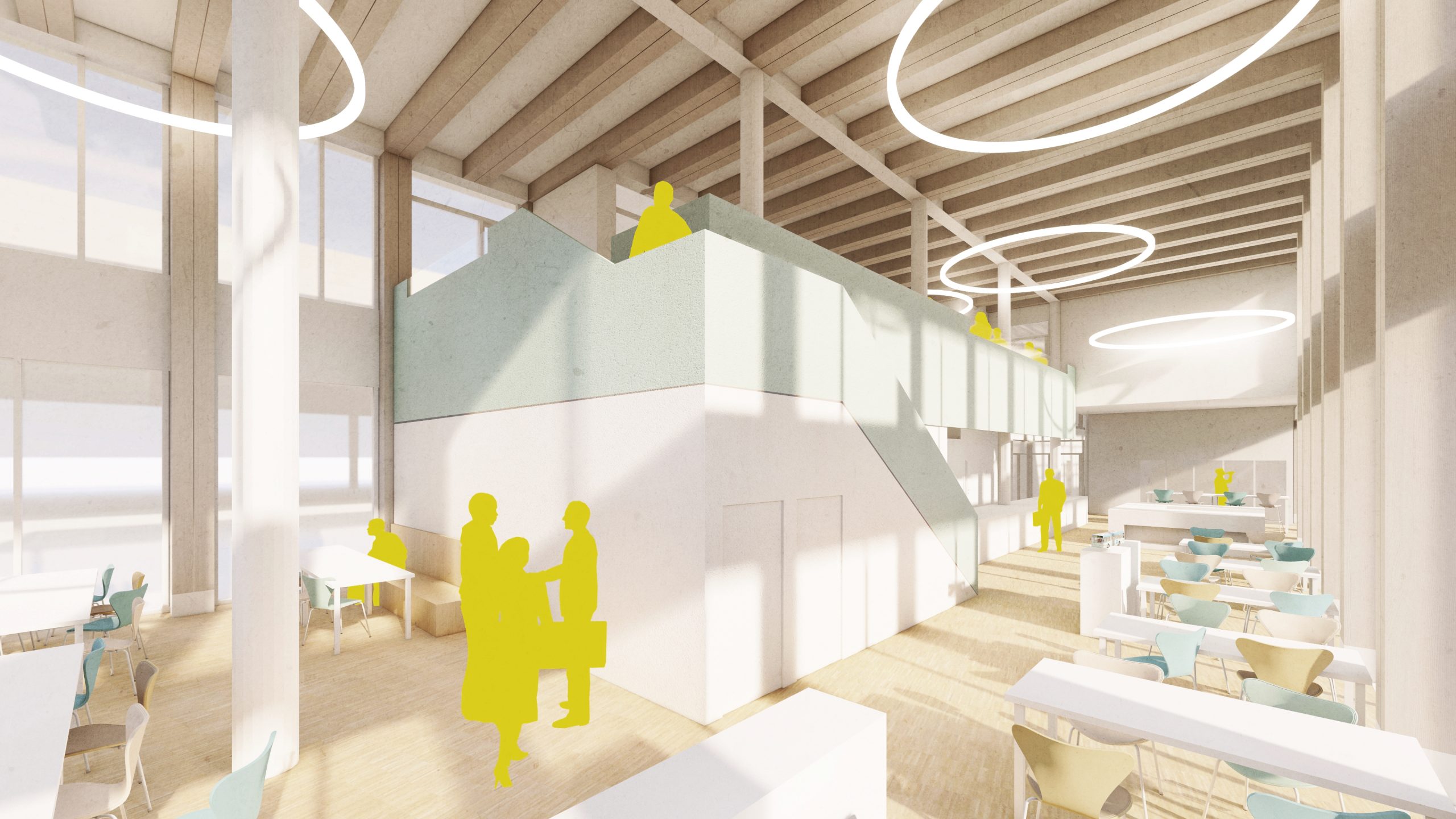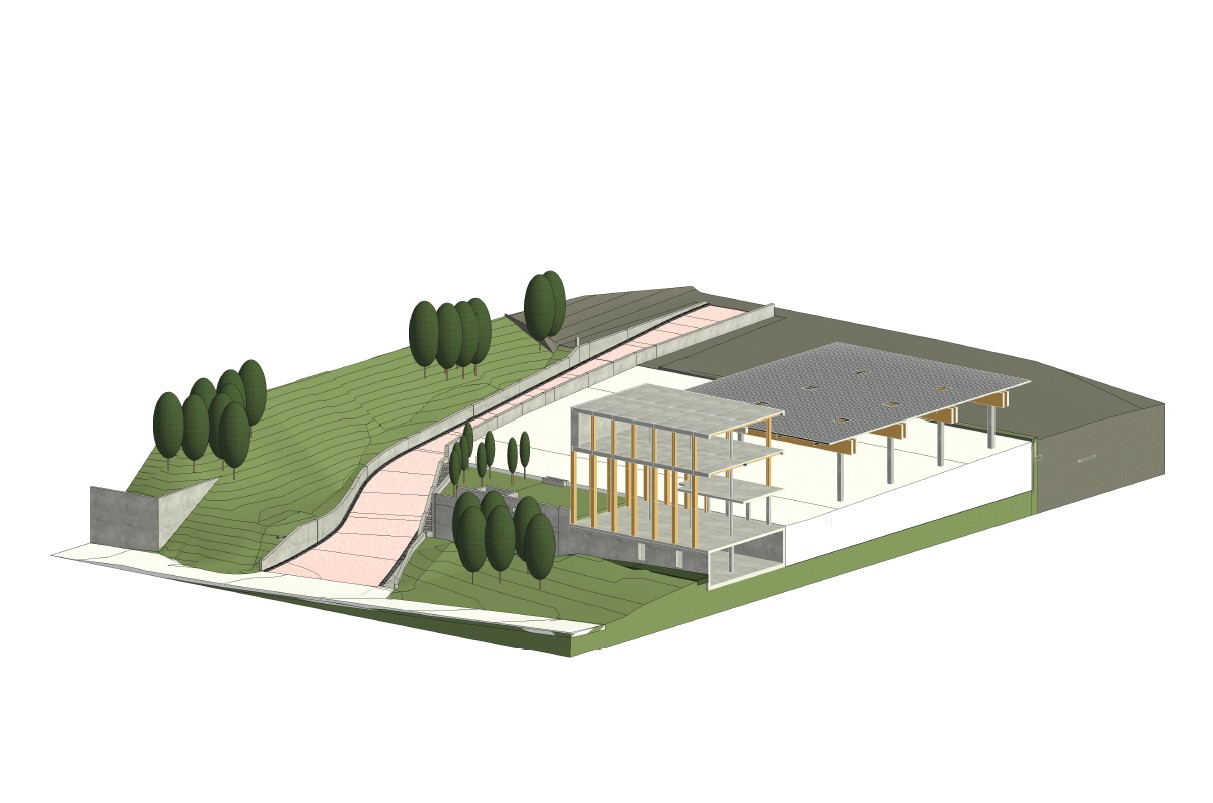 • Neubau Funktionsgebäude mit Verwaltungsnutzung, Umkleiden, Sozialräumen, Küche, Kantine in Holzhybridbauweise